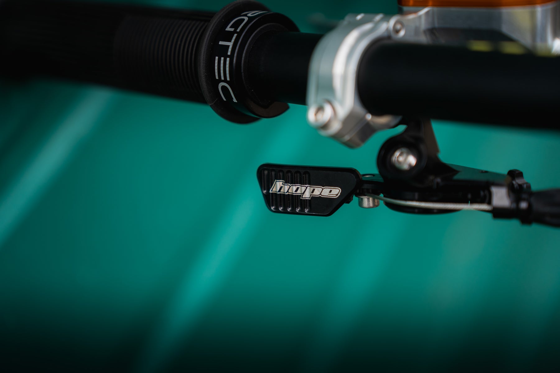 The build itself is also pretty special. A 31.8mm Burgtec cockpit adds extra compliance to an already comfortable bike, further enhanced by the Hope Fortus 26 wheels. The rest of the build is both high end and super dependable, with Shimano XT gearing and a host of Hope Technology parts including their Tech 4 V4 brakes, Floating Rotors, Crankset, Dropper Lever and bottom bracket.