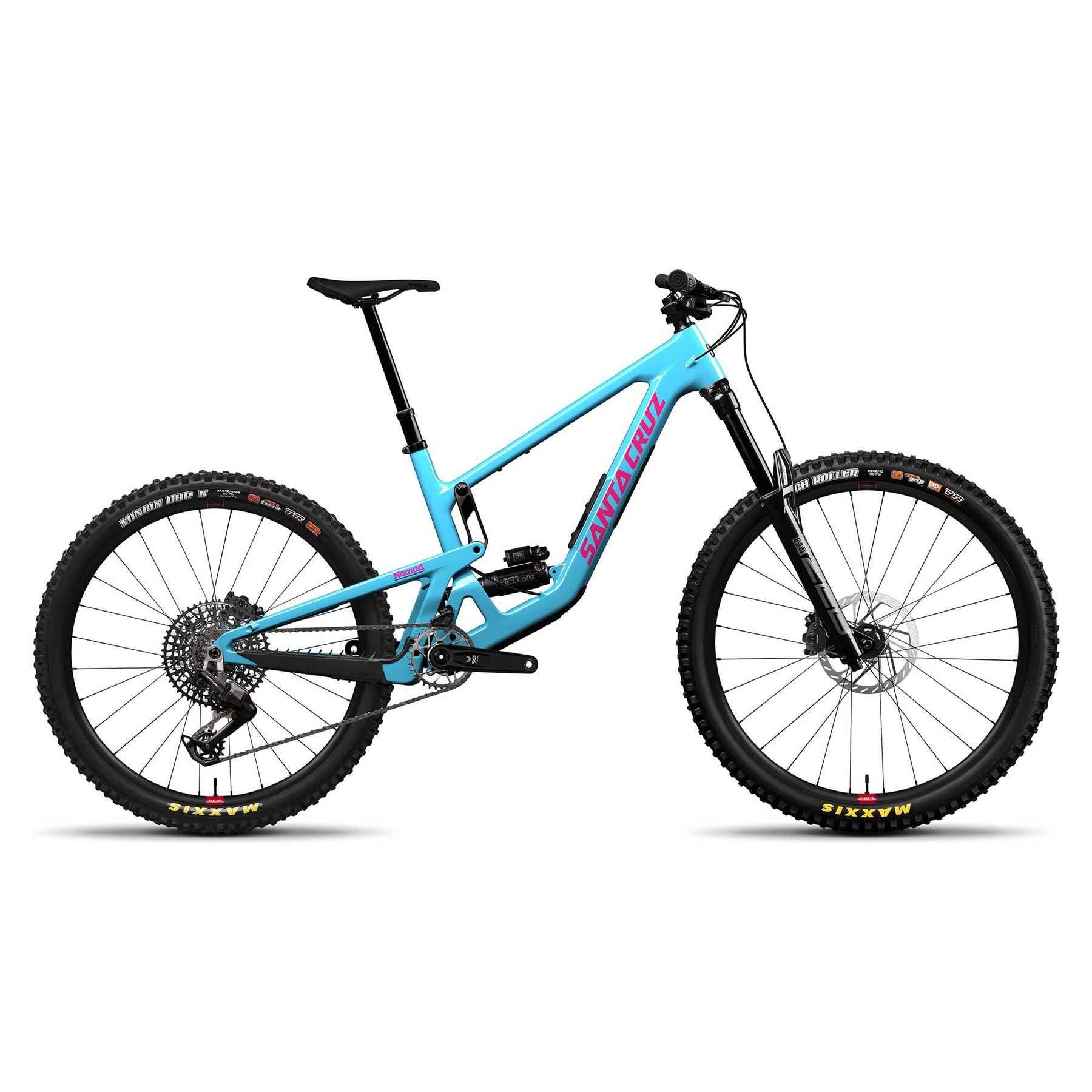 - Tyres: Front: Maxxis High Roller, 29"x2.4" MaxxGrip, EXO+ Rear: Maxxis Minion DHR II 27.5"x2.5" MaxxTerra, Double Down